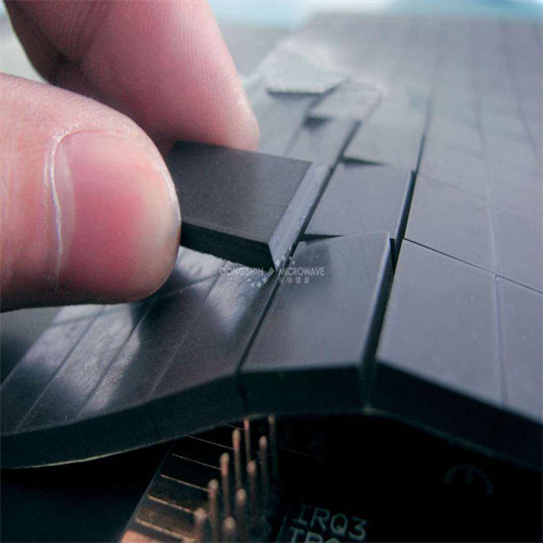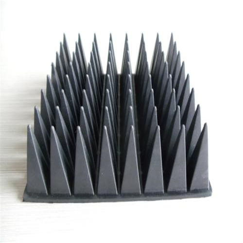 JRA Rubber Conical Absorber : is a kind of broadband absorber for millimeter wave . The reflectivity at normal incidence is -17dB and -25dB separately for the material thickness in wavelength of 0.35 and 1. For 60 Celsius off normal incidence, the reflectivity downgrades to -10~-17dB. Black, very good strength, excellent environment resistance and durability, RA can work outside in wretched environments with moisture and salty fog. RA is flexible can be curved when applied. Its power handling capability is 0.3w/cm 2 and can be operational at -50 ~ + 100 ℃ 。 RA is mainly used around radar and antenna, to isolate the remit and receive antenna, to cover the ship mast, to build small anechoic box and to cover those reflective components in testing fields, so as to eliminate interference and unnecessary reflection.